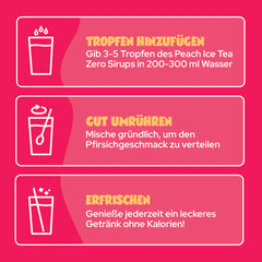 Einfach ein paar Tropfen in ein Glas Wasser geben, kurz mischen – fertig ist dein Peach Ice Tea.