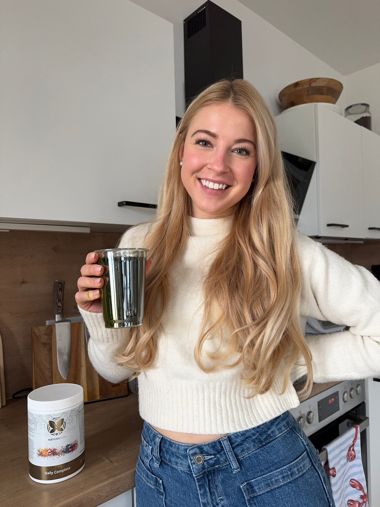 Mit Daily Complete bekommst du alles, was dein Körper täglich braucht, in einem erfrischenden Drink. ❌ Kein Pillen-Chaos, kein Vergessen, kein Stress. Nur 1 Glas pro Tag für Energie, Entgiftung, Immunsystem, Verdauung, Detox, Stressresilienz & Vitalität.