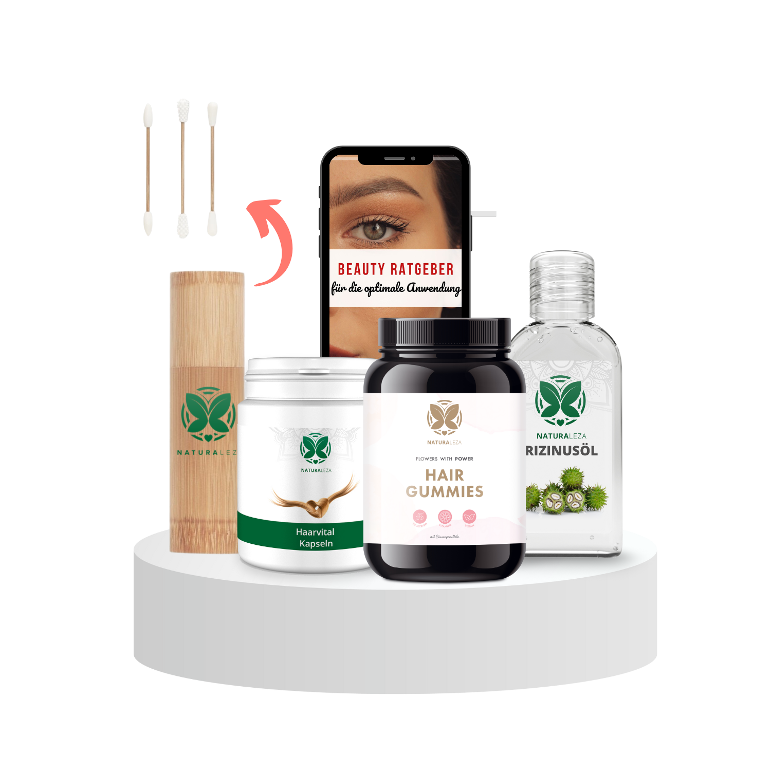 Für ein nachhaltiges Ergebnis bei Haarstärke & Dichte empfehlen wir eine konsequente Anwendung über mindestens 8–12 Wochen, da Haarwachstum Zeit braucht.