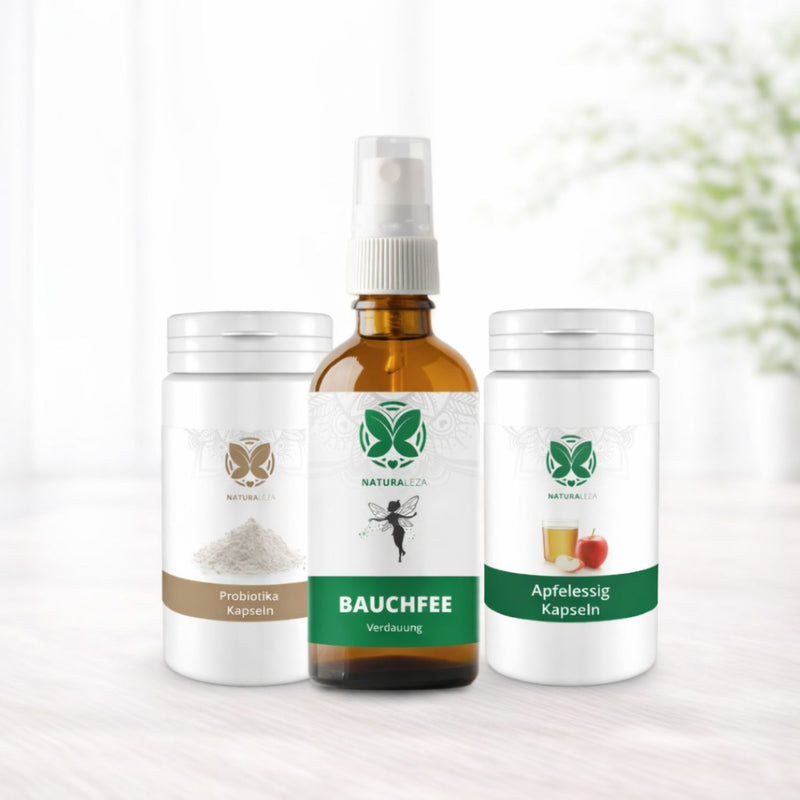 Viele spüren bereits nach wenigen Tagen mit dem Bauchfee Spray eine spürbare Entlastung. Die Probiotika entfalten ihre volle Wirkung nach rund 2–3 Wochen, wenn sich die Darmflora stabilisiert hat. Die Apfelessig Kapseln unterstützen kontinuierlich, indem sie die Verdauung regulieren und das Sättigungsgefühl fördern.