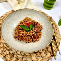 Mit hochwertigen Inhaltsstoffen wie texturiertem Erbsenprotein, Leinsamen und einer perfekt abgestimmten Gewürzmischung liefert sie 25g pflanzliches Protein pro Portion und unterstützt dabei eine ausgewogene Ernährung. Sie sorgt nicht nur für ein vollwertiges, nahrhaftes Essen, sondern schmeckt dabei so gut wie hausgemacht!