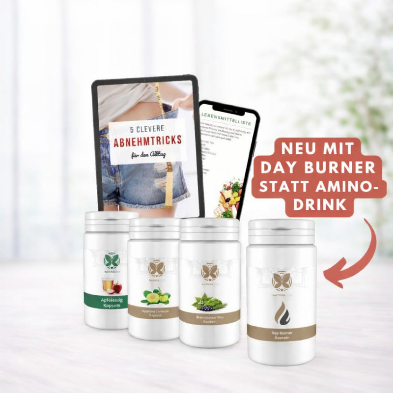 23 Tage kombinierte Anwendung aller 4 Produkte: Day Burner, Appetite Control, Apfelessig- & Brennessel Plus Kapseln