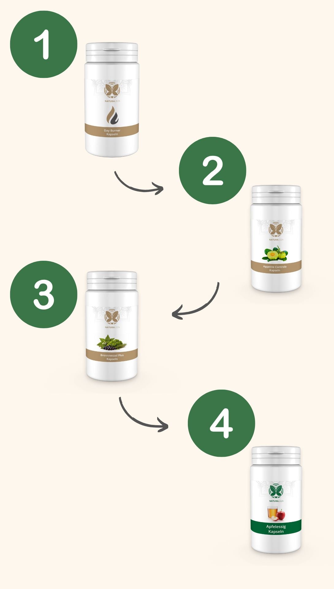 Danach folgt eine gezielte 7-tägige Brennessel-Pause, in der du mit den restlichen 3 Produkten normal weiterfährst.